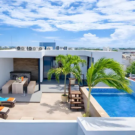 Situated within 5 minutes' walk of the Corazon de Mexico, the 1-room Modern Suite For 2 With Rooftop Pool - Central Playa Del Carmen entices guests with a solarium. Area attractions include the Los Fundadores Park, just 1.8 km away, and the Mamita's Beach Club is just 1.6 km from the apartment.